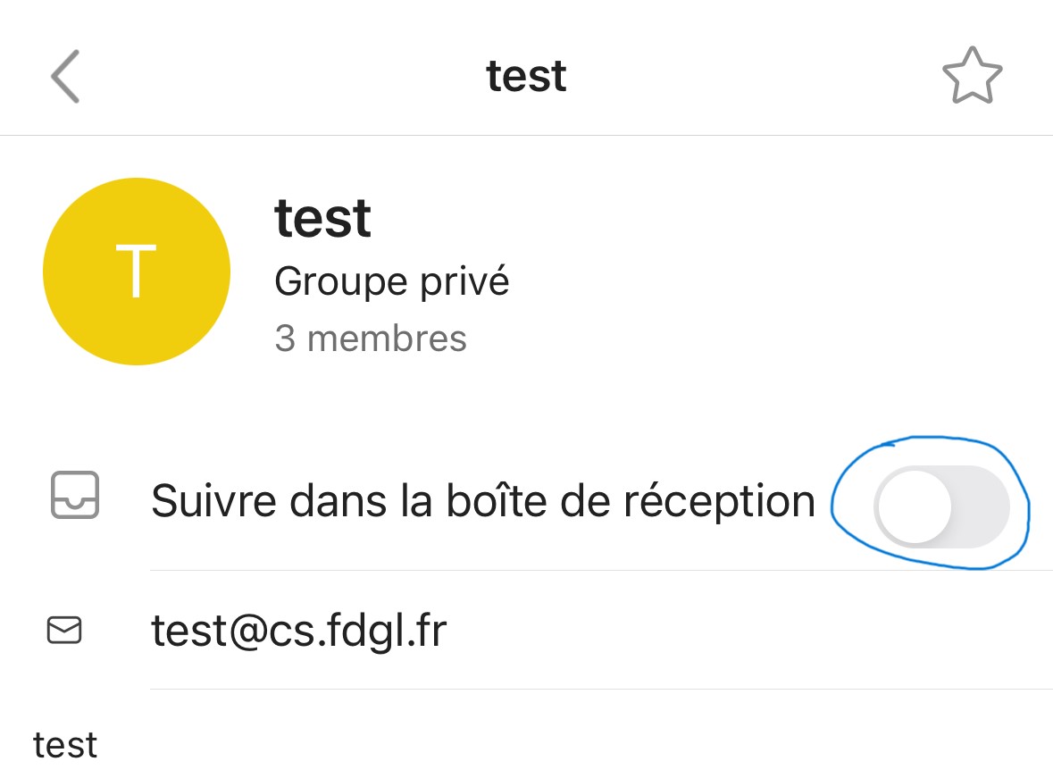 Puis sur le groupe concerné et appuyez sur détails du groupe :