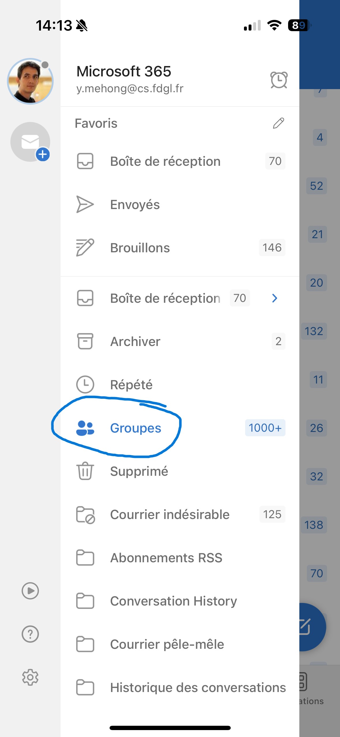 Allez sur les groupes (faire glisser du bord gauche vers la droite pour faire apparaitre le menu des dossiers et groupes) :